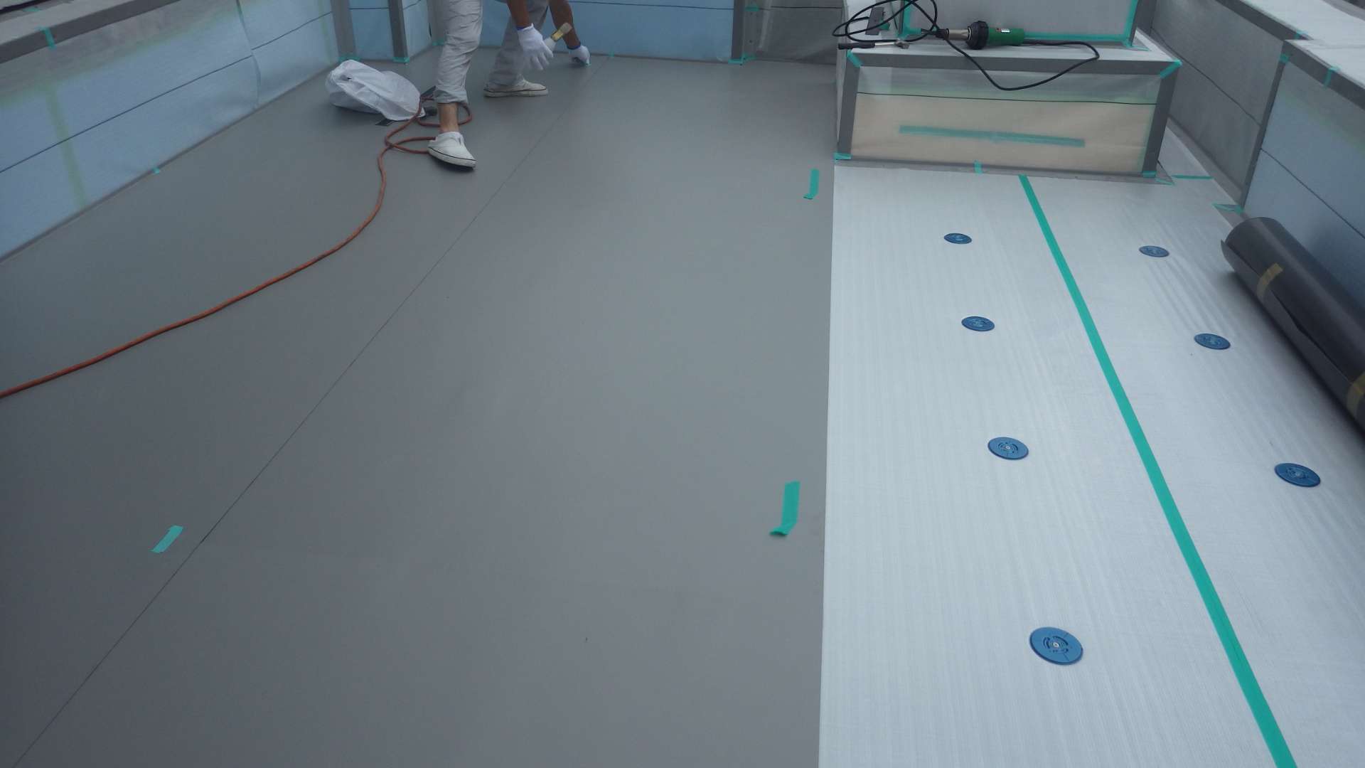 2004年の台風18号だったと記憶しておりますが、猛烈な強風により鉄塔や樹木が倒壊した時、塩ビシート防水層が全国的に多数飛散した事例が発生しました。この後、各メーカー共に固定ディスクの割付方法や、固定ディスク及び固定アンカーの変更による強度アップを試みております。