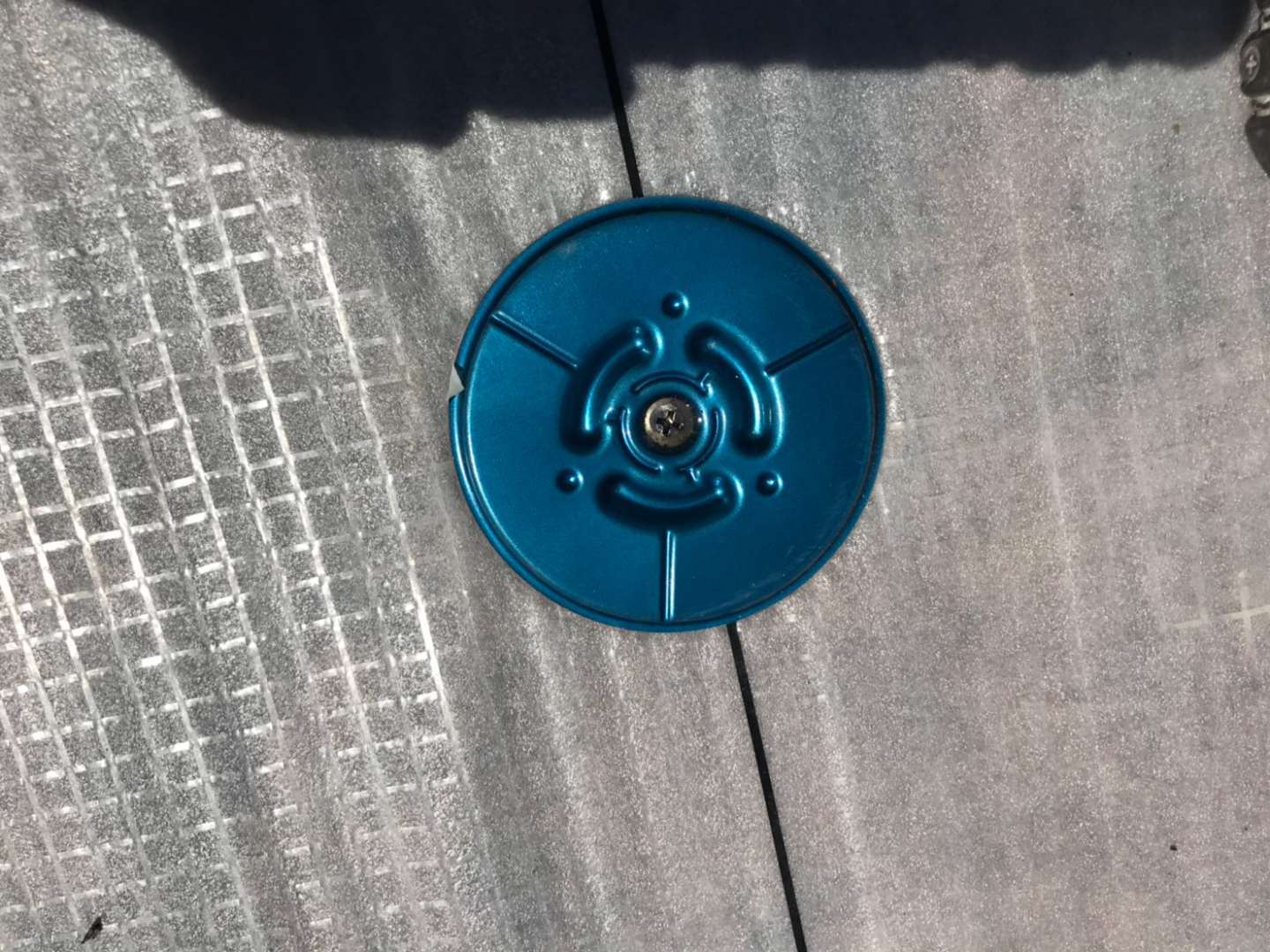 『③』は、そのメーカーが現在主流の先付ディスク工法ではなく、後付けディスク工法をまだ主力工法としていたことにより、物理的に塩ビシート防水層を固定しています。その為、加熱装置の不具合や施工不備で耐風圧強度が低下することがないのです(施工不備で漏水の危険性が増しますが)。