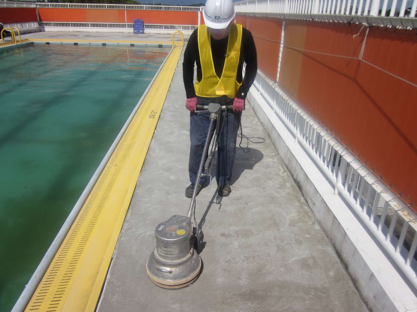 弊社が横浜市立小中学校プールサイドの長尺工事で