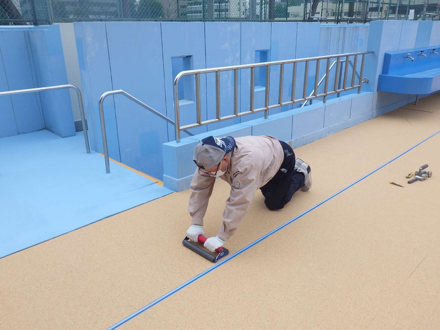 水泳プールプールサイド床長尺シート(南区某中学校)